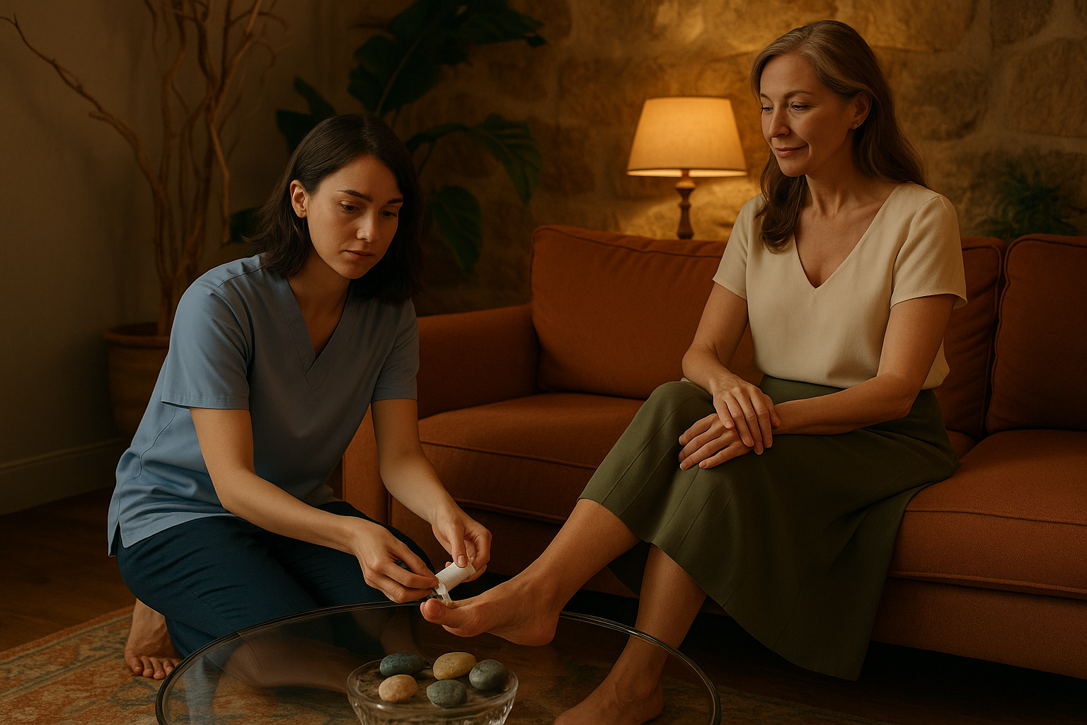 Hareket kabiliyeti kısıtlı hastalar için, Bornova’da evde yara bakımı hizmetimiz sayesinde tedavi süreci hastanın konforunu bozmadan, ev ortamında sürdürülüyor. Uzman hemşirelerimiz yara değerlendirmesini yerinde yaparak doğru tedavi yöntemini uygular.